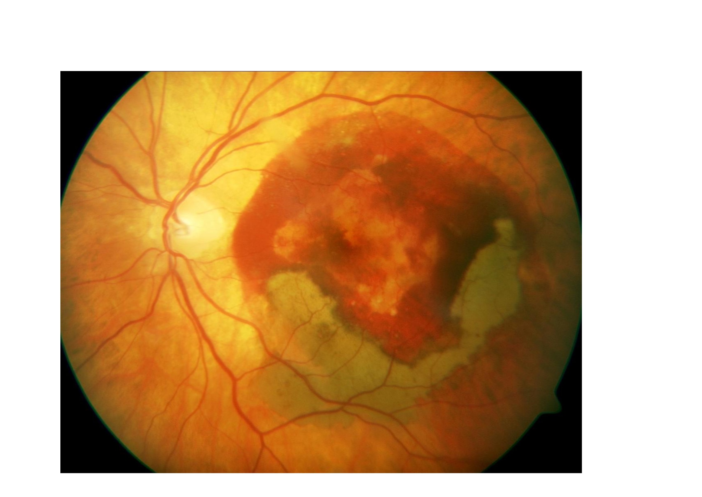 En los estudios ANCHOR y MARINA que demostraron el efecto beneficioso de ranibizumab en el tratamiento dela DMA exudativa se excluyeron aquellos casos que presentaban lesiones neovasculatres predominantemente hemorrágicas y el tratamiento de estas formas de DMAE exudativa mediante fármacos antiangiogénicos no estaba avalado por estudios científicos.