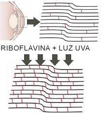 Con el Cross-Linking se incrementa la fortaleza biomecánica de la córnea ya que el adelgazamiento progresivo de la cornea se ralentiza, o incluso se detiene por completo. El procedimiento consiste en aplicar en la superficie ocular la combinación de la radiación UV y un fotoactivador con riboflavina que inicia un proceso de reticulación del colágeno corneal.