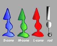 Tal y como comentamos en los post anteriores, las células receptoras del color son los conos, y hay tres tipos de ellos, receptores del rojo, del verde y del azul.