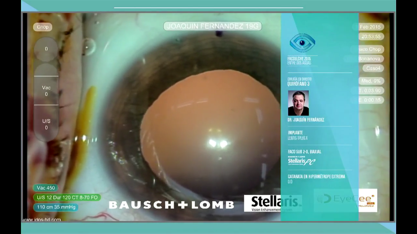 Nuestro director médico realizó una cirugía de catarata mediante microincisión de una catarata en un ojo corto, hipermétrope extremo. Las cirugías puede visualizarse en el siguiente enlace: Live.Facoelche.com