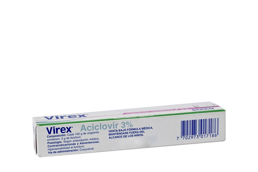 Aciclovir en cambio al ser un fármaco selectivo es menos tóxico para la superficie ocular. Está disponible en Europa como pomada oftálmica al 3% y constituye la primera línea de tratamiento para la queratitis herpética. Sus principales efectos adversos son la aparición de queratitis punctata y picor o escozor con la aplicación.