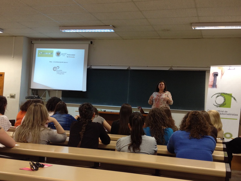 La semana fué intensa, y el viernes estuvimos en la Universidad de Granada, invitados por el Director de la Escuela de Optometría, Jose Antonio García a compartir unas Jornadas con los alumnos de postgrado y último curso de Óptica y Optometría. Para mí fué una satisfacción personal, compartir este día en la Universidad de Granada con todos los asistentes. Pudimos compartir y valorar los avances de la Optometría con los tiempos, con la Presidenta andaluz del Colegio Oficial Opticos Optometristas de Andalucía (COOOA), Blanca Fernández, y el vocal del Colegio para Universidades Juan José Durbán.