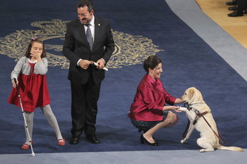 Recogieron el premio su presidente, Miguel Carballeda, Liv Parlee, la niña de 8 años que ha sorprendido estos días con su habilidad al piano, y Maria Cristina Lucchese con su perro guía Breezy.