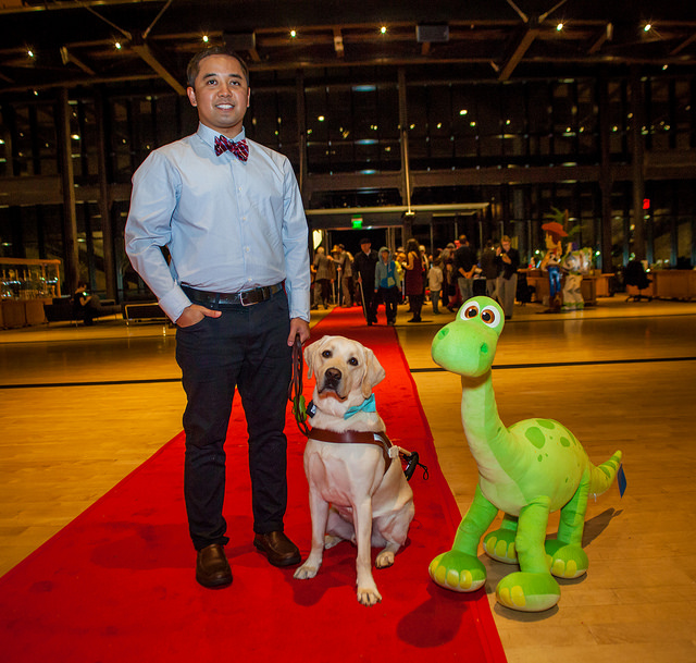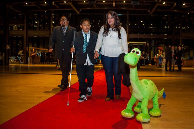 El mes pasado, Pixar organizo un evento en su sede en Emeryville para probar la nueva aplicación, en colaboración con organizaciones sin fines de lucro como Lighthouse for the Blind, Blind Babies Foundation (Fundación de Bebés Ciegos) y Guide Dogs. Con el aforo completo y todos sobre la alfombra roja, el evento fue un explosión de luz, sonido, flashes y toda una flota de perros lazarillos. La velada culminó con la proyección de “The Good Dinosaur”.