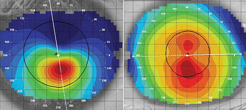 – Las lecturas topográficas mejoraron 12 meses después de CXL. La Kmedia, el cilindro queratométrico y la KSteepest se redujeron después de 12 meses. La Kmin, al igual que Kmax, se redujo entre los 12 y 24 meses. (1)