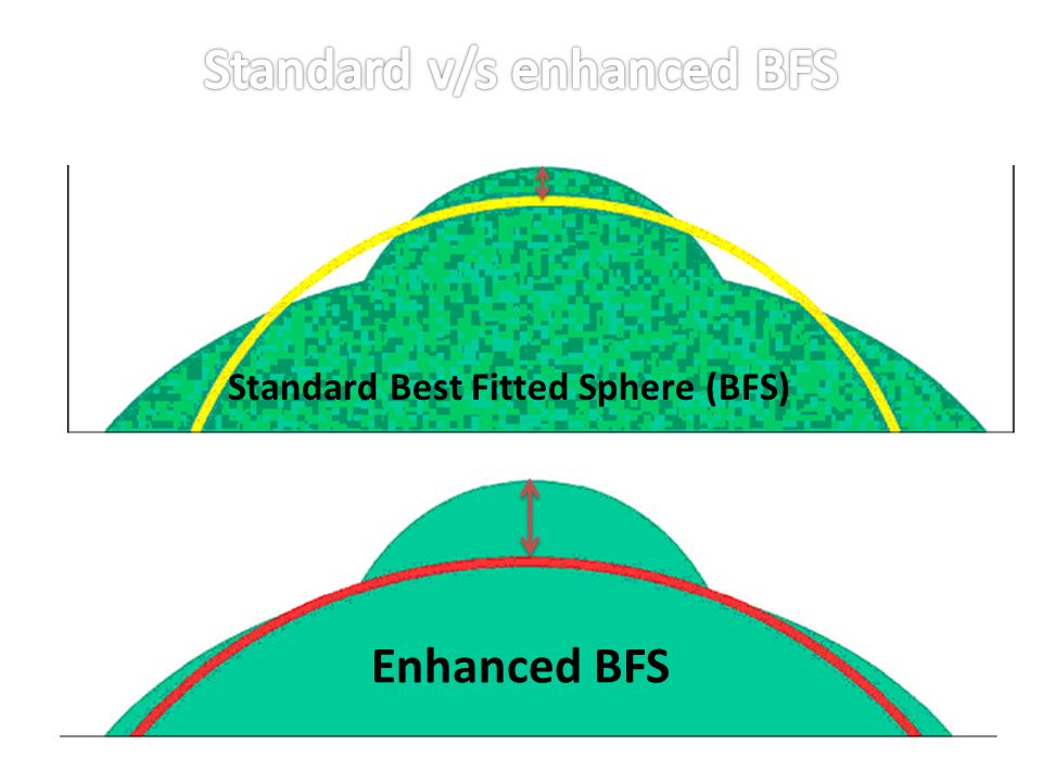 La clave del Belin-Ambrosio Enhanced Ectasia Display (BAD) es que además de mostrar los datos de elevación con respecto a los de la “Mejor Esfera de Ajuste” (BFS) en la zona central de 8,0 mm, como era habitual realizar, también utiliza una superficie de referencia denominada “Superficie de Referencia Mejorada” que elimina una zona óptica de diámetro pequeño (3,0 – 4,0 mm) centrada en el punto más fino del cálculo estándar de la BFS de 8,0 mm. El avance que significó esta “Superficie de Referencia Mejorada” se evidenció en que se obtiene una superficie de referencia más plana que refleja más estrechamente las porciones de la córnea menos alteradas típicamente por los cambios ectásicos queratocónicos y por lo tanto resulta en una mayor diferencia tomográfica entre la región ectásica y la superficie de referencia.