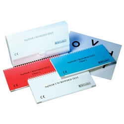 Se ofrecen siempre 4 letras por línea de cada cuadernillo, para garantizar la fiabilidad de la medida tanto para AV altas como bajas. También cuenta con tarjeta de emparejamiento. Para la mejor detección de la ambliopía, algunos incorporan contornos alrededor de las letras de igual grosor que su trazo. Para garantizar la“interacción de contornos” la separación entre cada letra es la mitad de su tamaño.