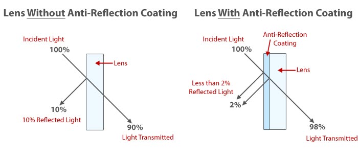 Las lentes oftálmicas (lentes de las gafas) son hoy día cada vez más sofisticadas gracias a la tecnología utilizada para su fabricación. Esto ha permitido mejorar la apariencia de las lentes, pero sobre todo, ha supuesto una mejoría en la óptica de éstas. Una prueba de ello han sido los revestimientos antirreflejantes usados para las mismas. Las lentes sin tratamiento antirreflejante sólo dejan pasar el 90- 92% de la luz, el 10-8% restante es reflejado en la lente, reduciendo su transparencia, y a su vez, la calidad de visión. Sin embargo, los tratamientos antirreflejantes aumentan hasta el 98-99% la cantidad de luz refractada.