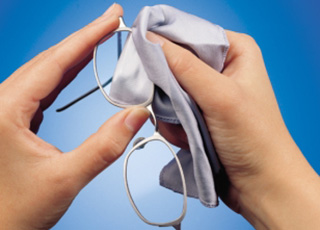 - Sujeta la montura por la parte derecha para limpiar el cristal derecho y por la izquierda para el otro cristal. De esta manera evitarás deformar la montura, forzar el puente de la misma o girar los cristales en la montura. Esto último es importarte sobre todo cuando tu graduación tiene astigmatismo, ya que el eje del mismo podría girarse con una incorrecta limpieza,afectando así a tu agudeza visual.